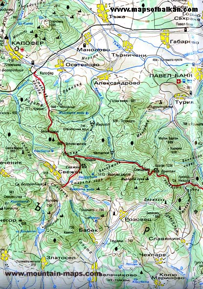 Wanderkarte Kopriwschtiza - Sredna Gora Gebirge