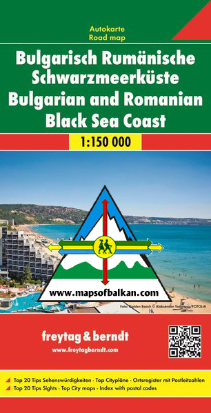 The southern part of Romania’s Black Sea coast and the Bulgarian coast on a double-sided map at 1:150,000 from Freytag and Berndt prominently highlighting the region’s 20 most interesting locations, with their descriptions provided in the accompanying booklet. Coverage extends from well north of Constanta to the Turkish border and includes Varna, Burgas and other popular holiday destinations.
