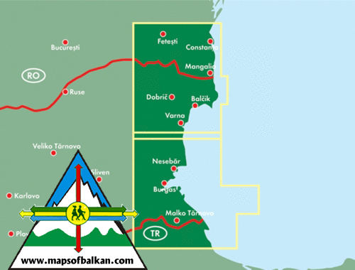 Also provided are street plans of Constanta, Varna and Burgas, plus a more general overview road map of Bulgaria with southern Romania. Map legend and the text in the booklet include English.